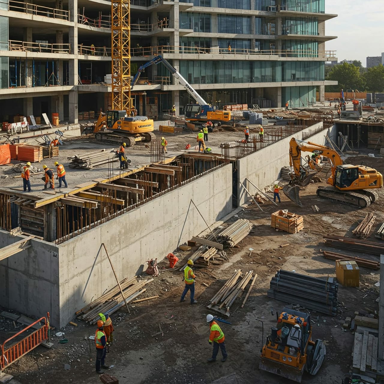 Structural Framework: Robust steel beams, columns, and concrete slabs for secure and scalable commercial structures.
